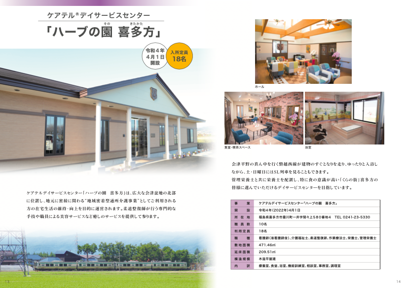 | 事業 | ケアテルデイサービスセンター「ハーブの園 喜多方」 |